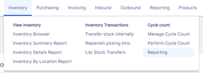 Go to Inventory > Reporting (Under Cycle Count). You will be taken to the Inventory Changes Report page.