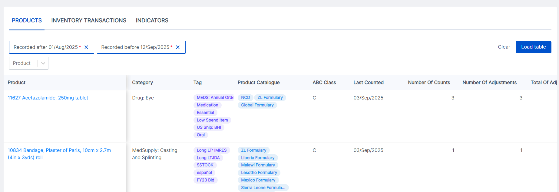 For each tab, you must select a time frame and click on Load Table for OpenBoxes to generate data to display.