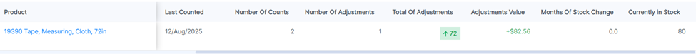 - Number of Adjustments: The number of adjustments resulting from the number of counts that were performed during the designated period, i.e., how many Cycle Counts resulted in an inventory discrepancy