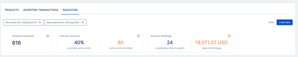 This indicator presents the number of products for which the overall inventory adjustment for the selected period is negative; meaning if the total of all adjustments recorded is negative during the given period, that product is accounted for Inventory Shrinkage. The financial inventory shrinkage is the equivalent of the inventory decrease for these products in USD.